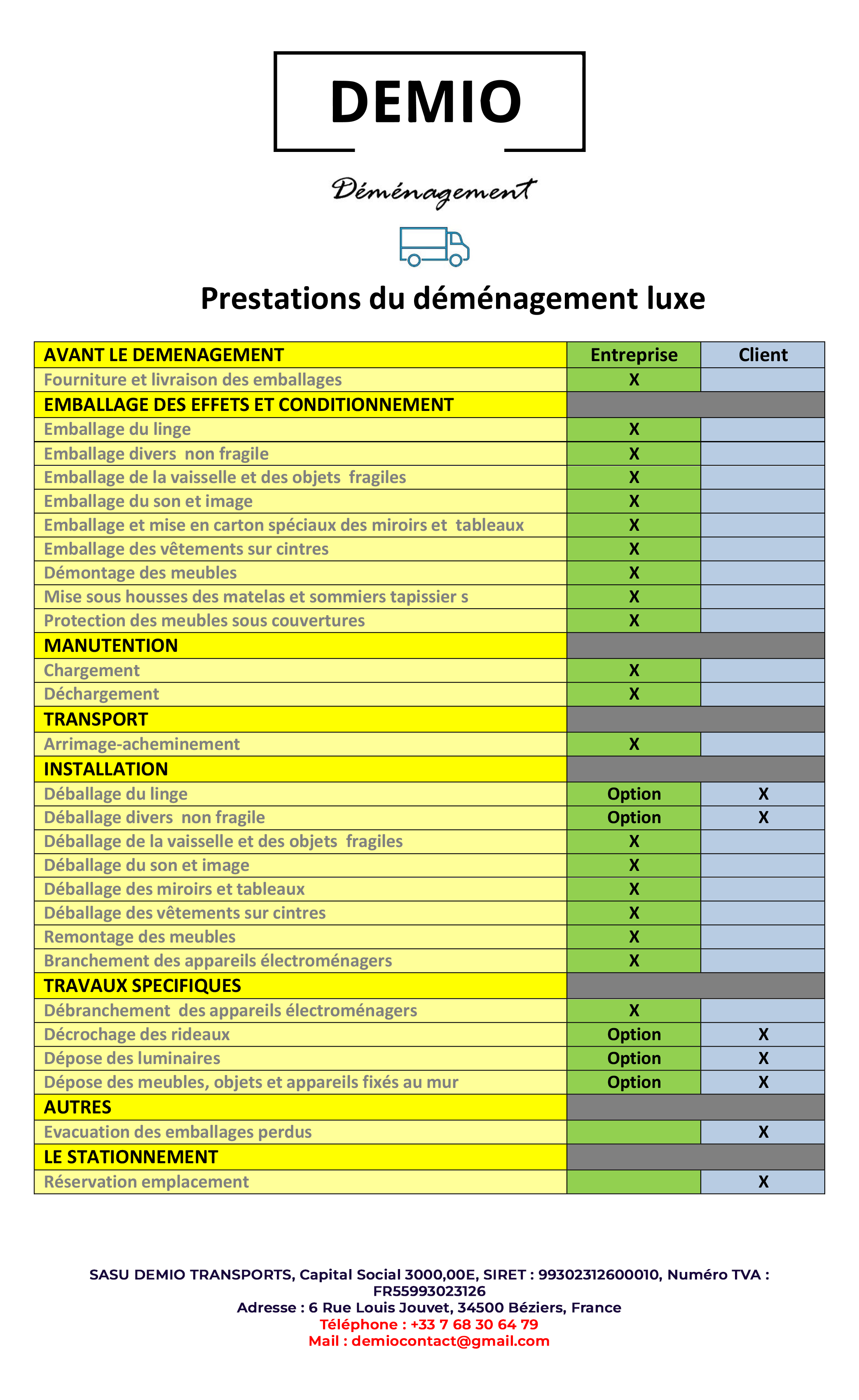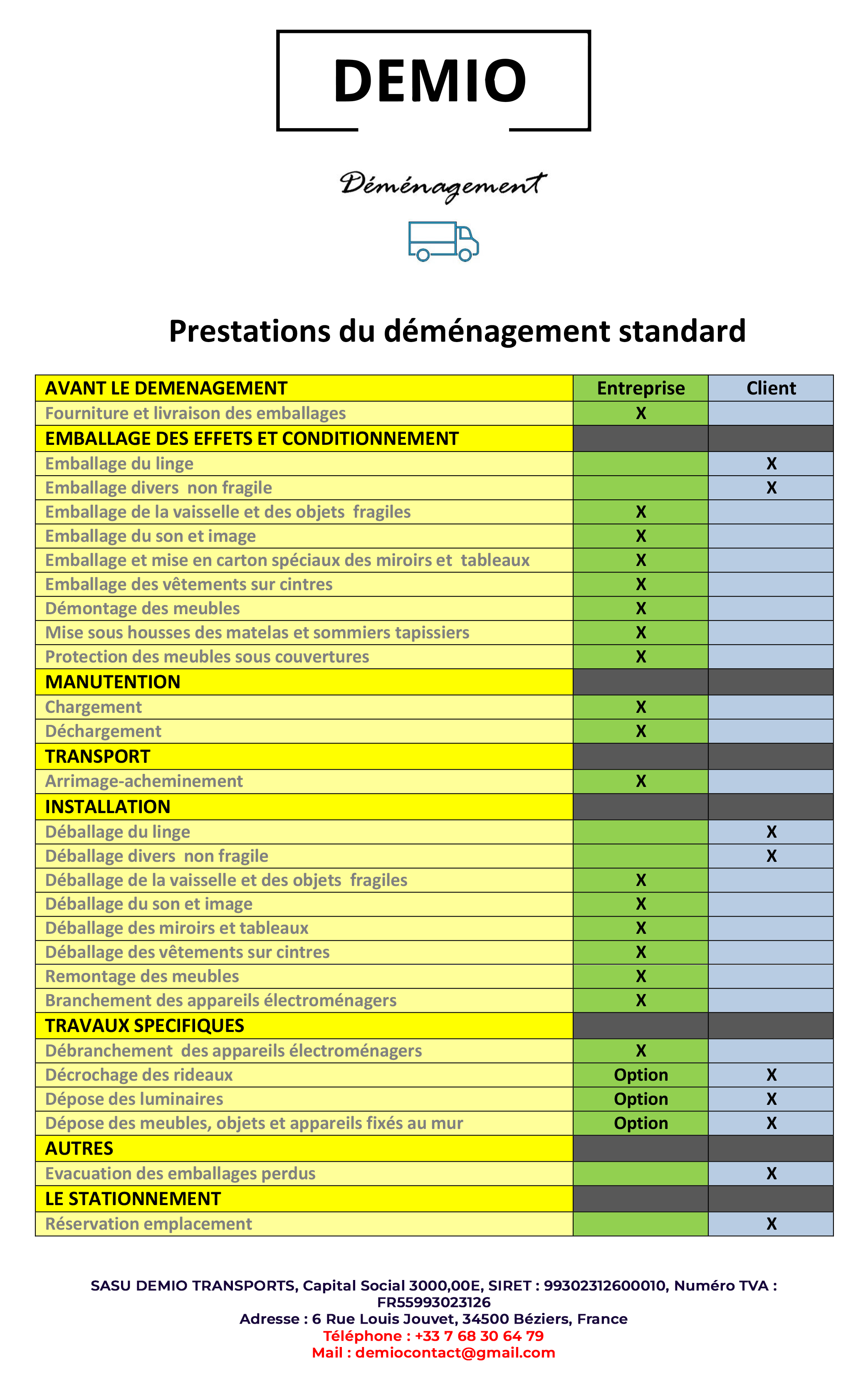 Quelques informations principales concernant votre déménagement…